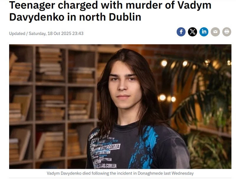У Дубліні 17-річного українського підлітка Вадима Давиденка убив його ровесник із Сомалі.