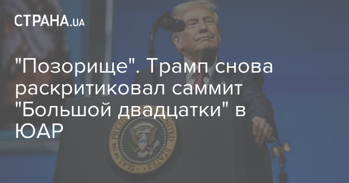 Президент США Дональд Трамп знову розкритикував саміт "Великої двадцятки" у ПАР та назвав його проведення "позорищем". Він заявив, що жоден американський урядовець туди не поїде.