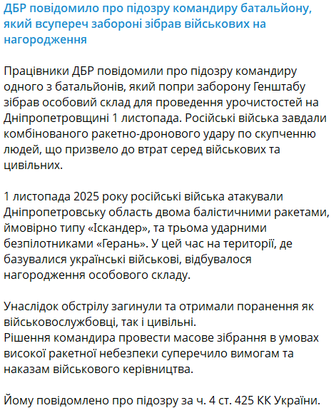 Комбату, який проводив нагородження під час обстрілу, повідомили про підозру.