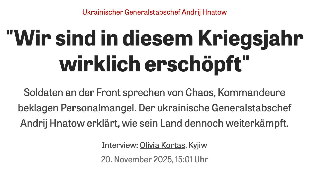 Про це повідомив начальник Генерального штабу ЗСУ Андрій Гнатов в інтерв'ю Die Zeit.