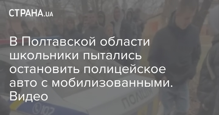 На Полтавщині школярі намагалися заблокувати рух поліцейського автомобіля, який відвозив мобілізованих.