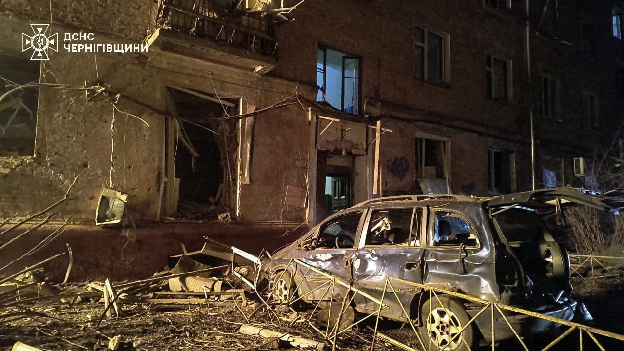 7.51 У Чернігові дрон упав біля багатоквартирного будинку, постраждали троє людей, повідомляють рятувальники.