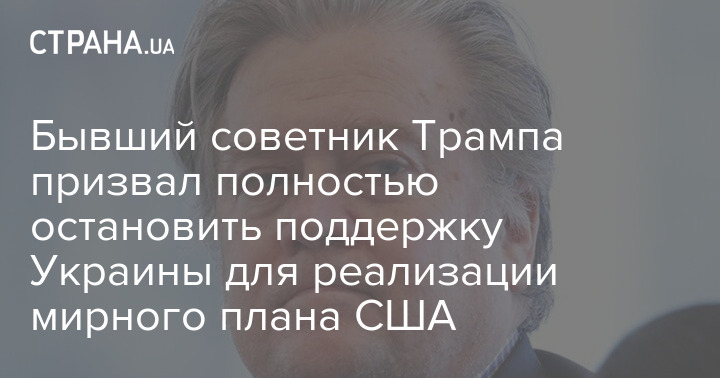 Колишній радник президента США Дональда Трампа Стів Беннон закликав повністю припинити фінансову, військову та розвідувальну підтримку України, заявивши, що без цього неможлива реалізація розробленого Вашингтоном мирного плану щодо врегулювання конфлікту.