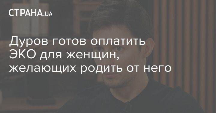 Засновник месенджера Telegram Павло Дуров готовий сплатити витрати на екстракорпоральне запліднення (ЕКЗ) для всіх незаміжніх жінок віком до 38 років, які бажають використати його донорську сперму для запліднення, і обіцяє своїм дітям частку від свого статку, який оцінюється в 17 мільйонів доларів.