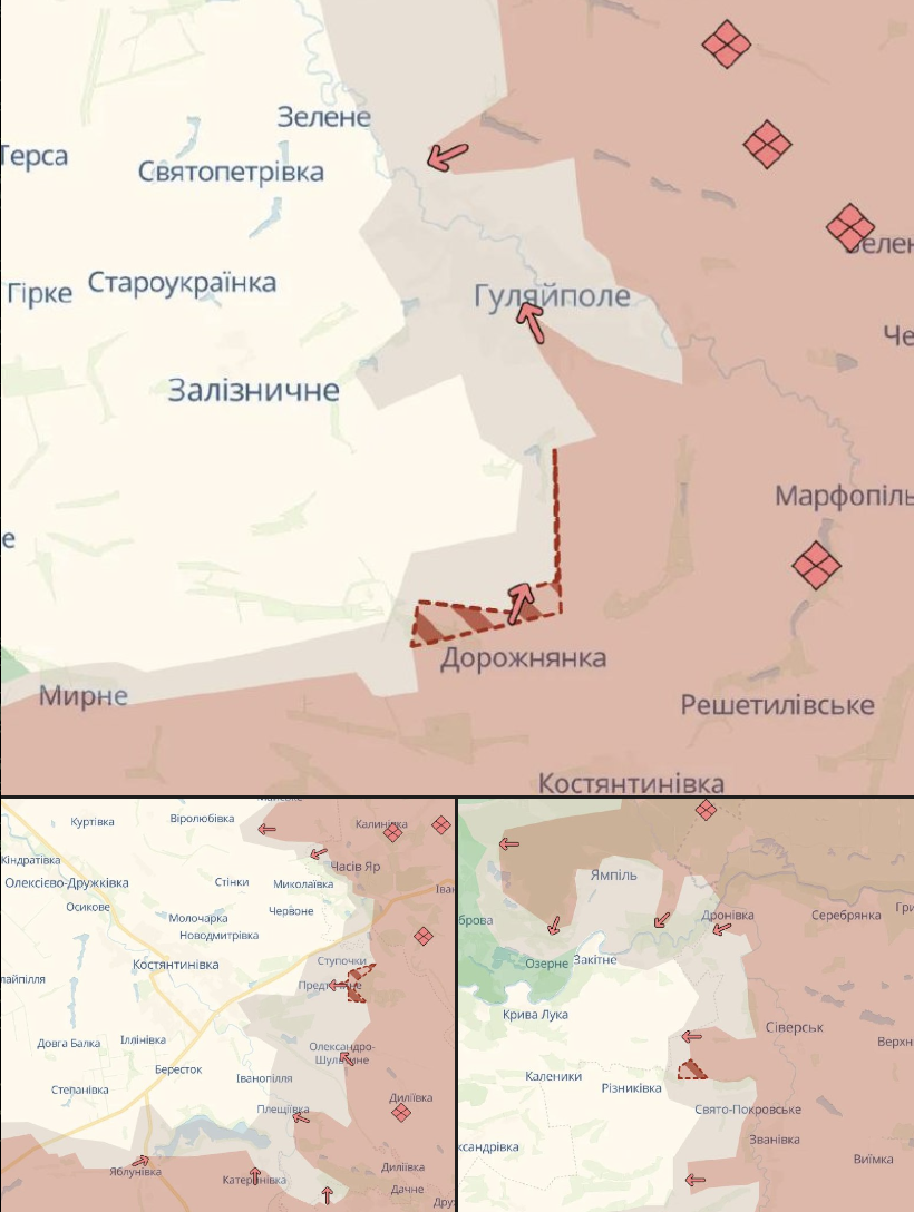 Судячи з карти паблика, "сіра зона" перейшла вже на захід від Гуляйполя до селища Залізничне.