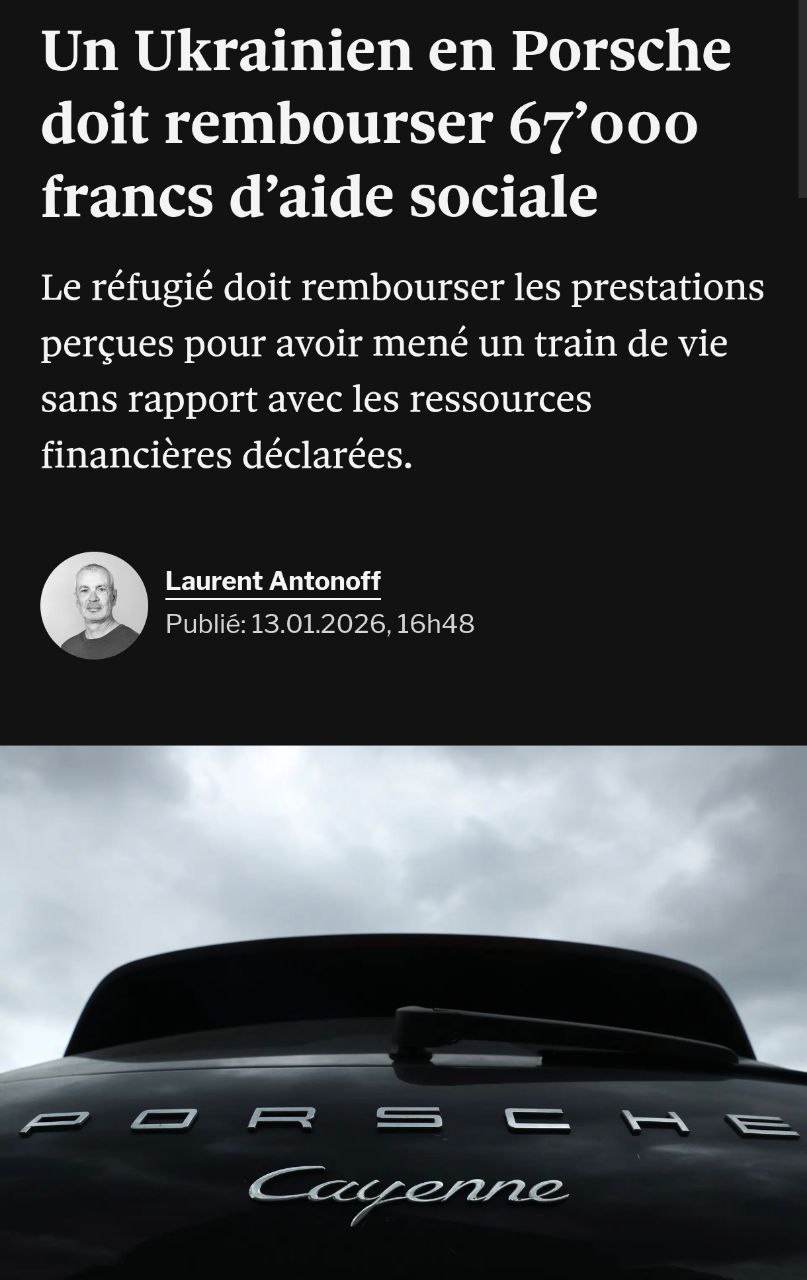 Porsche Cayenne та поїздки до Європи. Біженця з України у Швейцарії змусили повернути соцвиплати