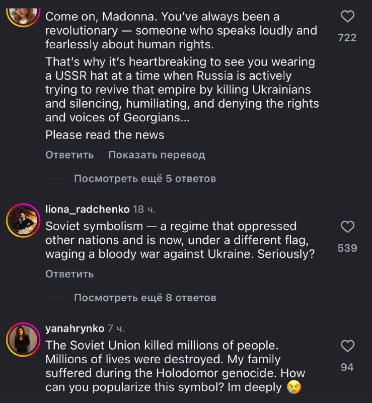 "Радянський Союз убив мільйони людей. Мільйони життів були знищені. Моя сім'я постраждала під час геноциду Голодомору. Як ви можете популяризувати цей символ?" - Помічають у Мережі.