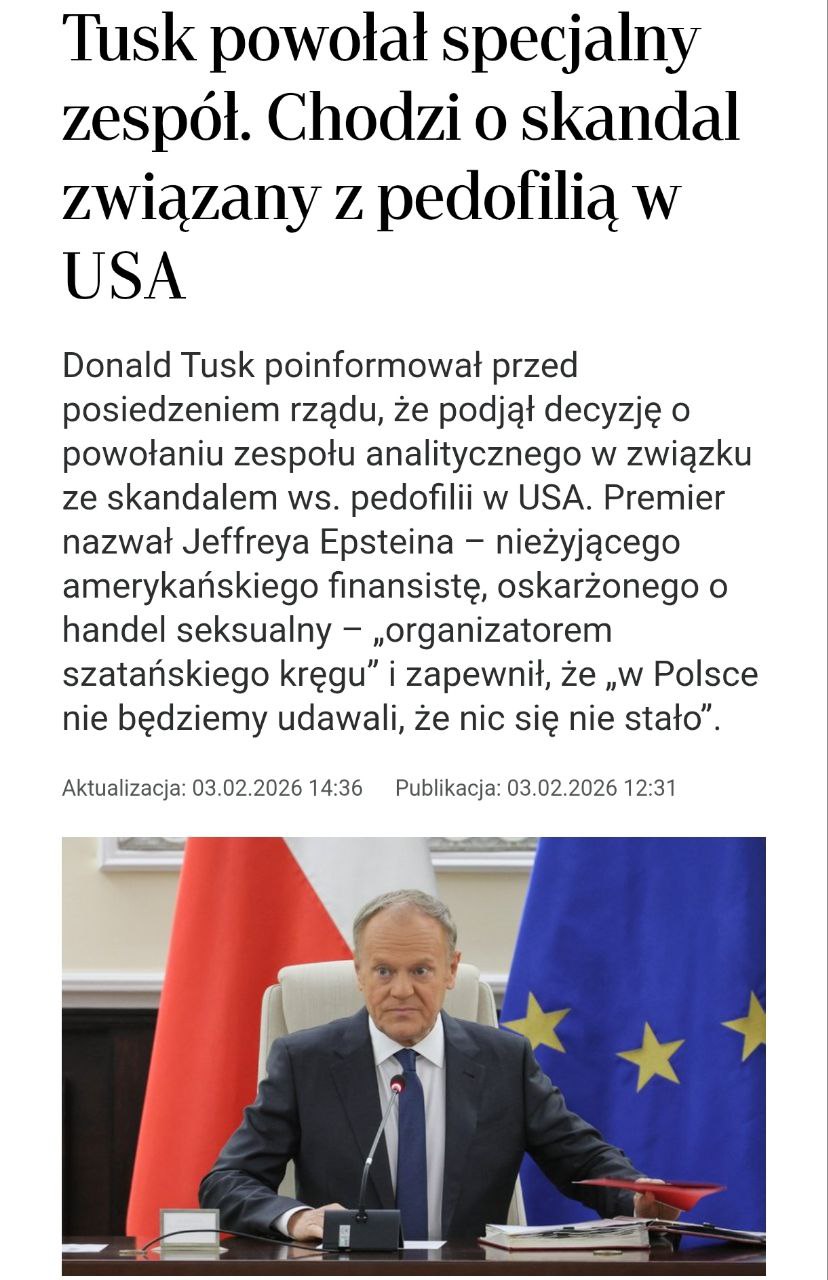 Комісія має перевірити інформацію про можливі контакти громадян Польщі з оточенням Епштейна, які згадуються у матеріалах американських судів та ЗМІ.