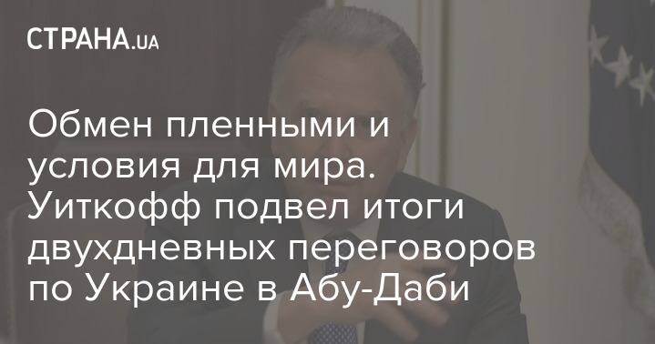 Спецпосланець президента США Стівен Уіткофф підбив підсумки дводенних переговорів щодо України в Абу-Дабі, назвавши їх "конструктивними".