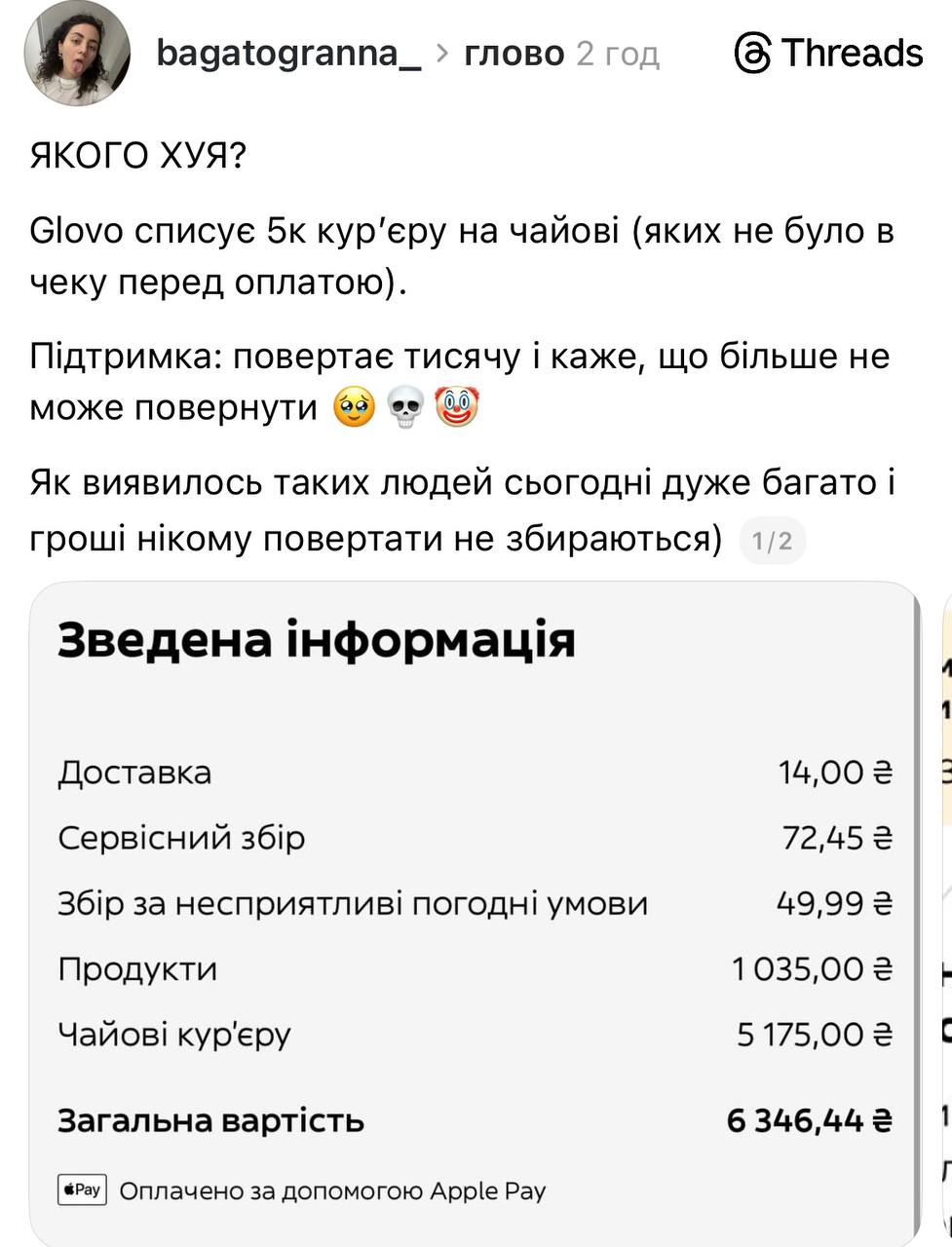 "Щойно кур'єру чайові знялися 10 тис. гривень замість 100, підтримка не відповідає вже 30 хвилин!" - повідомляють у коментарях.