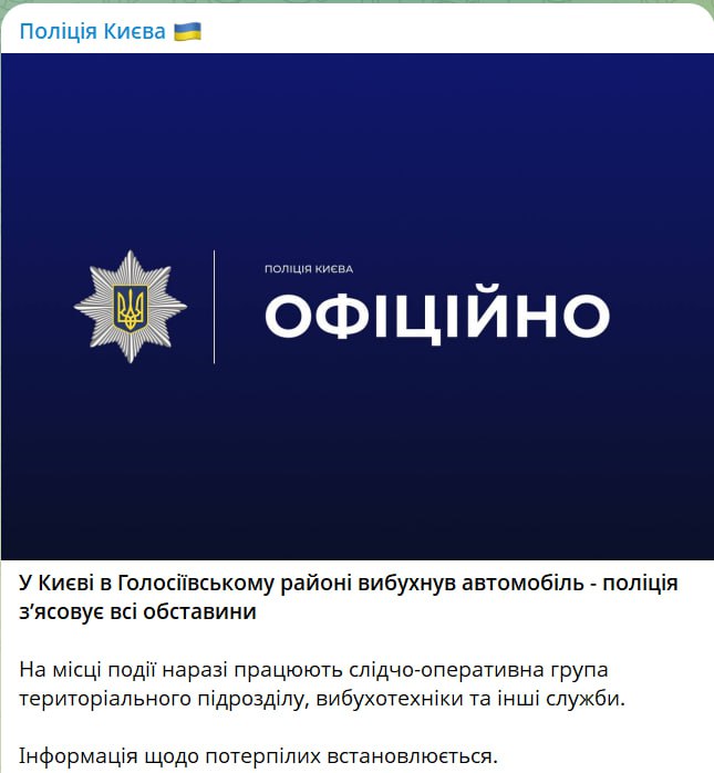 У Києві на території Голосіївського району стався вибух автомобіля.