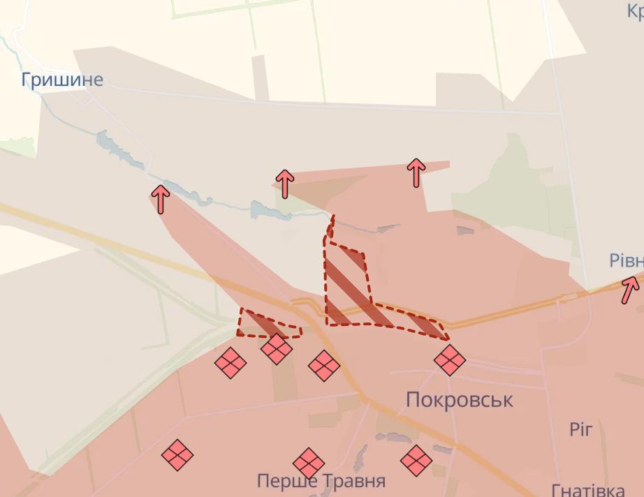 На фронті армія РФ просунулась у Покровську та південніше Оріхова Запорізької області, повідомляє Deep State.