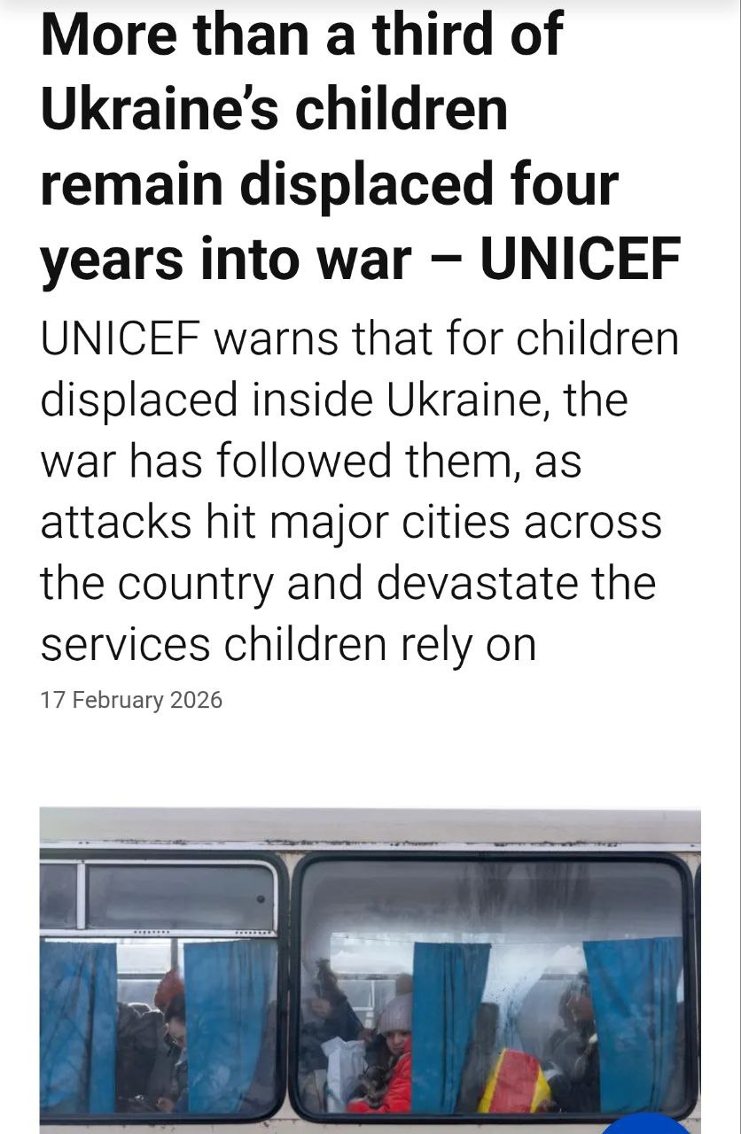 7.54 Більше третини дітей в Україні – 2 589 900 – залишаються переміщеними через чотири роки війни. Про це повідомили у ЮНІСЕФ.