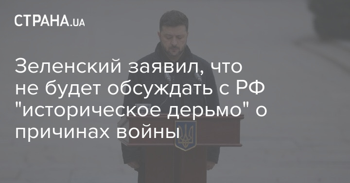 Президент України Володимир Зеленський заявив, що не збирається обговорювати з російською стороною історичні причини, які призвели до війни, як стверджує Москва.