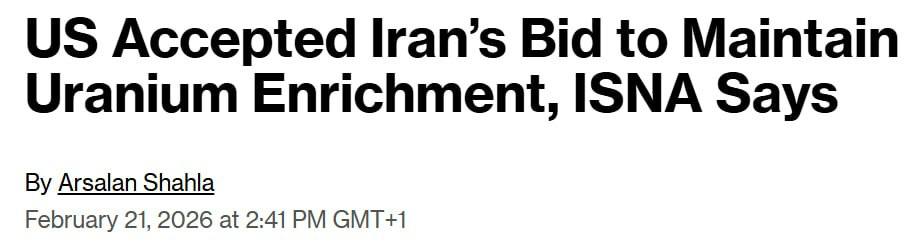 Bloomberg, з посиланням на іранські ЗМІ, пише, що США на переговорах з Іраном поступилися у питанні збагачення урану, відмовившись від вимог щодо його припинення.