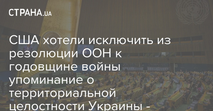 США пропонували виключити з ухваленої вчора резолюції Генеральної Асамблеї ООН про підтримку тривалого миру в Україні згадку про територіальну цілісність країни.