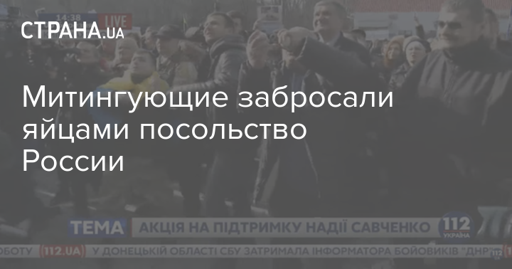 Пикетчики, требующие освобождения Надежды Савченко, забросали здание посольства РФ в Украине яйцами.