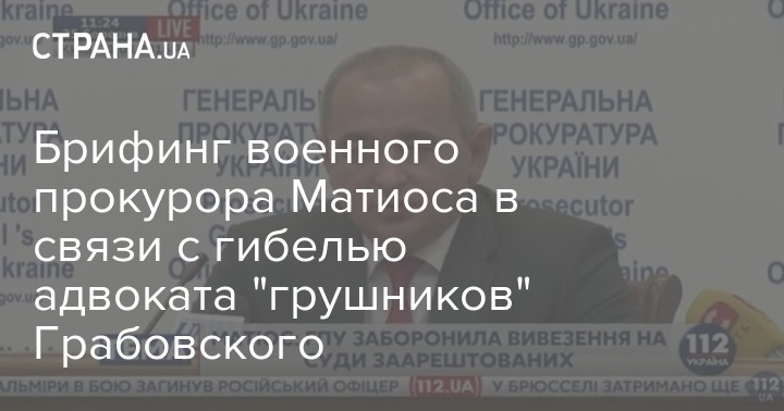 Сегодня, 25 марта, проходит брифинг военного прокурора Анатолия Матиоса в связи с гибелью адвоката "грушников" Юрия Грабовского. Прямая трансляция.