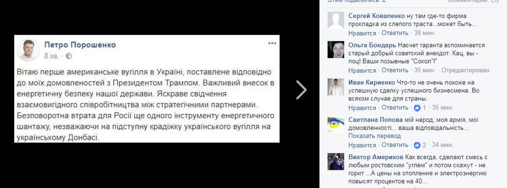 В соцсети прибытие антрацита из США также вызвало бурную и неоднозначную реакцию.
