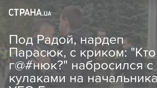 Когда Гелетей отошел и попытался, что-то сказать Парасюку. Тот бросился на него с криком: "Кто г@#нюк?" Рядом с ним находился нардеп Сергей Лещенко.