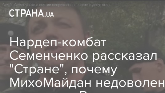 Народный депутат и комбат "Донбасса" Семен Семенченко заявил "Стране", что МихоМайдан не устраивают законы по снятию неприкосновенности, поданные в Конституционный суд. Они даже не приняты в первом чтении. А если и примут, то снятие иммунитета нардепов Рады этого созыва не коснется - оно произойдет с 2020 года.